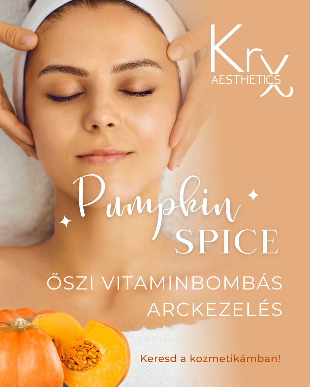 A KRX sütőtökös arckezelő program egy frissítő‑ragyogást fokozó arckezelés, amely a sütőtök természetes enzimeit, alfa-hidroxisavait (AHA), antioxidánsait és egyéb tápláló összetevőit használja ki, hogy mélyebb tisztítást, hámlasztást és bőrmegújítást érjen el. A kezelés célja, hogy a bőr tónusosabb, simább és fényesebb legyen, miközben finoman elősegíti a sejtek megújulását.