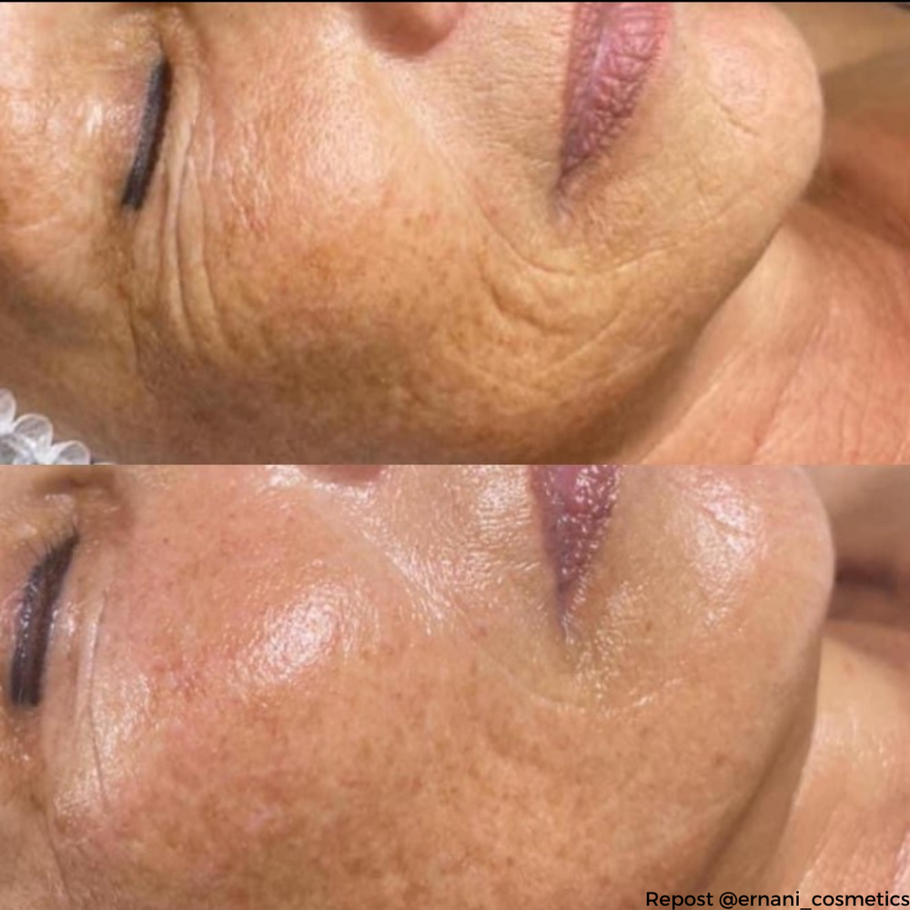 Lifting hatás injekció nélkül – a kezelés a mikro‑kollagénszálakat „beolvasztja” a bőrbe, amelyek belülről támogatják a feszesebb struktúrát.