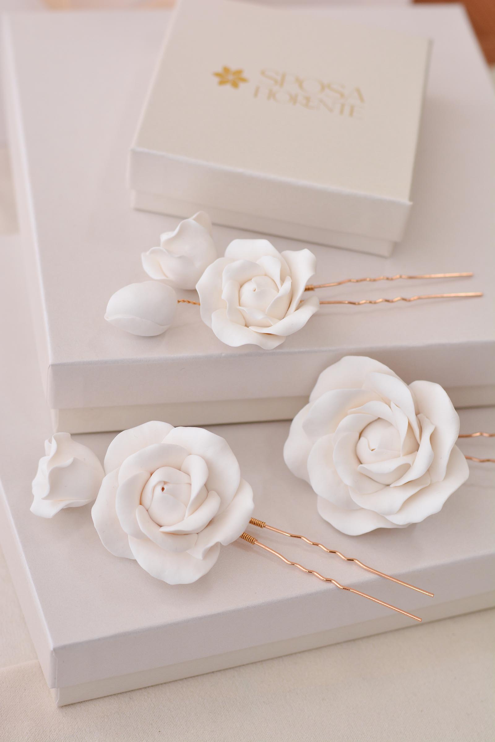 A rózsa a szerelem, a szépség és a romantika örök szimbóluma, így ezt a hajdíszt olyan menyasszonyoknak ajánlom akik a klasszikus stílus kedvelői.