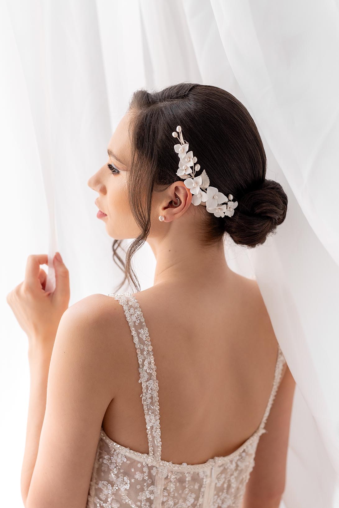 Elegancia minden virágsziromban! A porcelán virágok részletgazdagsága természetes és időtlen szépséget kölcsönöz minden menyasszonynak. Kollekciómat a természet és az elegancia közösen ihlette, kifinomultság, letisztultság és végtelen romantika jellemzi. Minden termék egy művészeti alkotás: egyedileg, szerető kezek között készül minőségi alapanyagokat és kézműves technikákat alkalmazva.