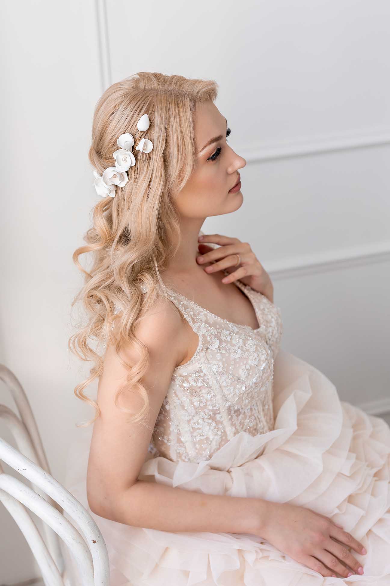 Elegancia minden virágsziromban! A porcelán virágok részletgazdagsága természetes és időtlen szépséget kölcsönöz minden menyasszonynak. Kollekciómat a természet és az elegancia közösen ihlette, kifinomultság, letisztultság és végtelen romantika jellemzi. Minden termék egy művészeti alkotás: egyedileg, szerető kezek között készül minőségi alapanyagokat és kézműves technikákat alkalmazva.