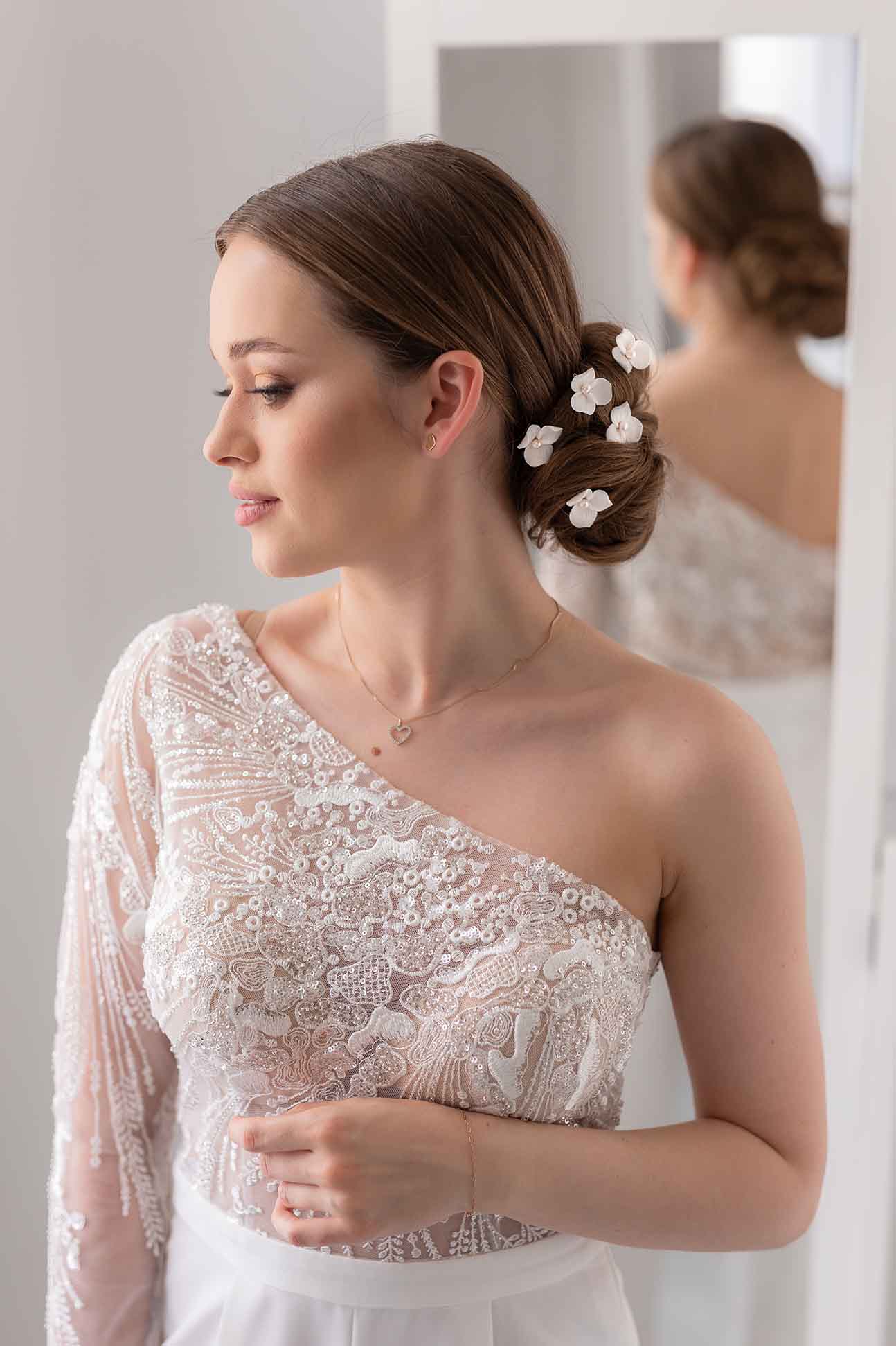 Elegancia minden virágsziromban! A porcelán virágok részletgazdagsága természetes és időtlen szépséget kölcsönöz minden menyasszonynak. Kollekciómat a természet és az elegancia közösen ihlette, kifinomultság, letisztultság és végtelen romantika jellemzi. Minden termék egy művészeti alkotás: egyedileg, szerető kezek között készül minőségi alapanyagokat és kézműves technikákat alkalmazva.