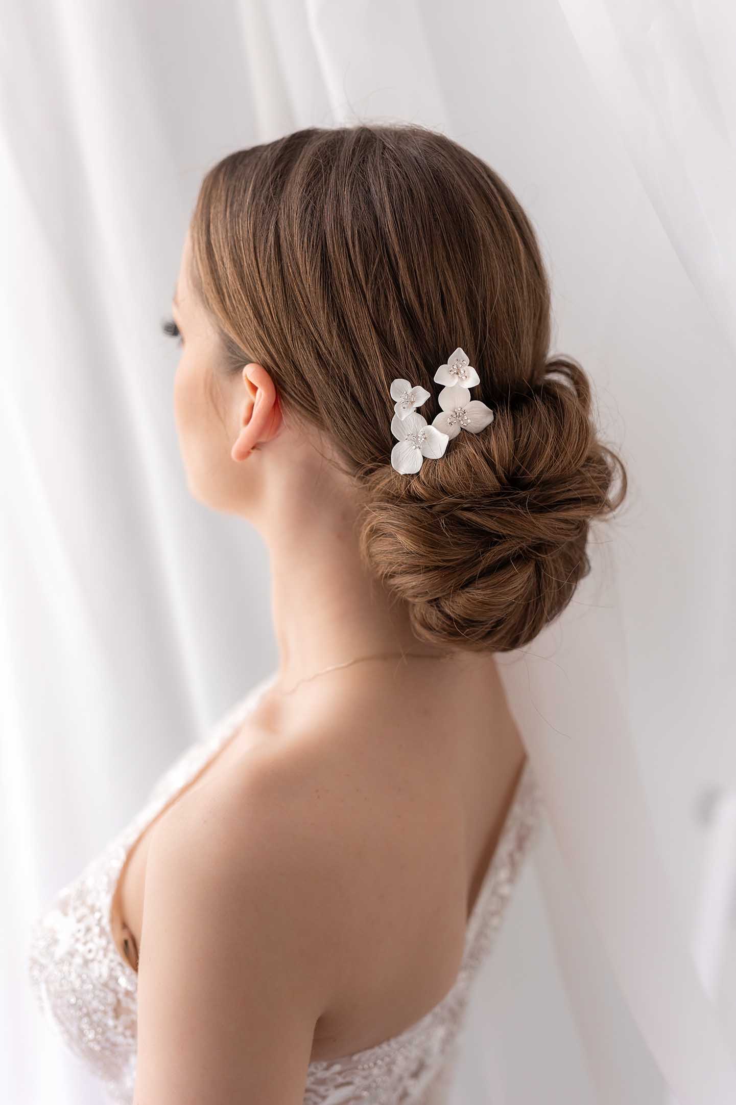A Livia hajtű szett eleganciáját a részletgazdag porcelán virágok illetve a közepükben található Preciosa R üveggyöngyök csillogása adja. A felhasznált virágok minden egyes szirma egyedileg, kézzel készül rendkívüli odaadással és figyelemmel, így tud igazi bájat és ragyogást kölcsönözni ennek a kiegészítőnek.